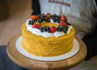 Медовик 1 990 ₽ Декор Выберите параметр Декор Без декора Ягоды (сезонные из наличия) В корзину В корзину Описание Описание Состав теста: Мука, сахар, масло сливочное, мед, яйцо, соль, сода. Состав крема: сметана, сахар. Срок хранения в холодильнике 72 ч Белки Жиры Углеводы Ккал На 100 г: 6,4 21,1 56,3 440,3 Поделиться