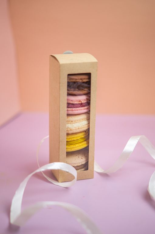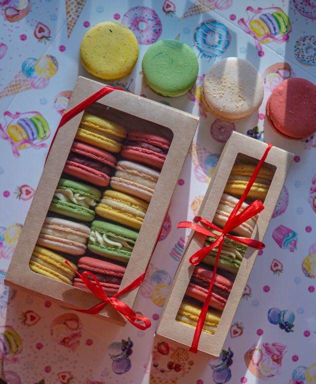 Состав: сахар, миндальная мука, яичный белок, начинка (шоколадный ганаш с натуральным наполнителем).
